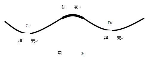 冰輒理論認(rèn)為:大洋地殼中心沉降的過程中,不僅表現(xiàn)為對于板塊交界地帶的撕裂同時(shí)洋殼的中心部位C、D區(qū)域也會出現(xiàn)倒V字形的斷裂如圖3所示,當(dāng)然在于大洋的中心初期形成地殼斷裂的短時(shí)期內(nèi)火山就會迅猛爆發(fā),所以我們所能見到的只能是大洋的中脊,實(shí)質(zhì)上大洋地殼的底層是一個(gè)倒V字形的大斷裂,這也是大洋中脊火山頻繁爆發(fā)的主要原因。