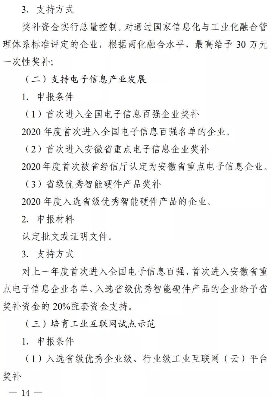 蕪湖市2020年促進(jìn)新型工業(yè)化若干政策規(guī)定實(shí)施細(xì)則印發(fā) 作者: 安徽新天源建設(shè)咨詢有限公司 最后修訂: 2021-02-05 08:59:23 摘要: 附件
