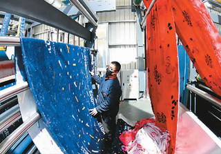 江蘇省連云港市金融機(jī)構(gòu)日前對(duì)認(rèn)定的142家疫情防控重點(diǎn)保障企業(yè)加大對(duì)接服務(wù)力度,落實(shí)優(yōu)惠信貸資金23.29億元,建立貸款發(fā)放綠色通道,優(yōu)先保障企業(yè)融資需求,助力企業(yè)加快復(fù)工生產(chǎn)。圖為在連云港海州經(jīng)濟(jì)開發(fā)區(qū),工人正在加工生產(chǎn)一批出口毛毯。