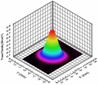2013年10月,電子所實現(xiàn)了國內(nèi)首次DPAL銫激光輸出,激光輸出功率394mW,光光效率7.4%,實驗光路如圖2-9所示。對各項參數(shù)進一步優(yōu)化后,所得輸出激光具有極好的光束質(zhì)量,光束功率密度分布如圖2-10所示。激光器光束質(zhì)量M2因子接近1。實驗證明了DPAL在光束質(zhì)量方面的潛力是極大的。