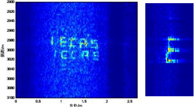 近幾年,我們在合成孔徑激光雷達方面也做了很多工作,2016年取得了較好的實驗成果,在國內(nèi)首次實現(xiàn)了機載合成孔徑激光雷達成像,地點位于陜西蒲城內(nèi)府機場,對如圖3-1所示的目標進行成像,結(jié)果如圖3-2所示,分辨率可達5厘米以下。