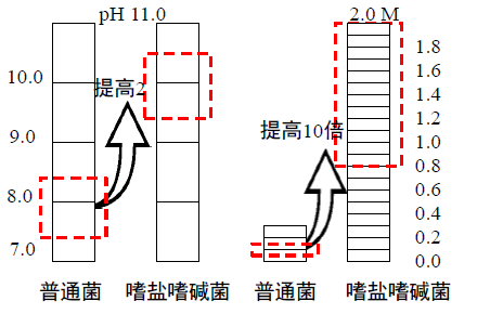 針對新型的嗜鹽嗜堿硫氧化系統(tǒng),我們自行篩選了嗜鹽嗜堿極端微生物,并敲除降低單質硫產生的基因途徑,對其進行遺傳基因改造。該微生物可在較高的pH值和鹽度范圍內生長,相對普通菌群的耐受能力大大提高(圖1-4)。