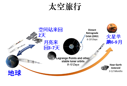 人類的太空旅行,不久就會實(shí)現(xiàn)。從下圖可以看到去各個目的地的時(shí)間。
