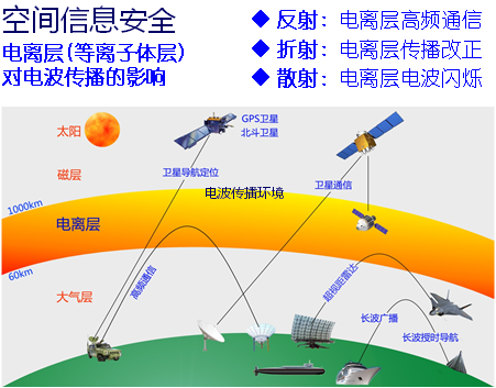 無線電波的傳播依賴于電離層,它們要么在電離層反射、要么穿過電離層、要么在電離層折射。電離層的變化就影響無線電波的傳播。人類需要通過各種模型的計(jì)算,對電離層傳播進(jìn)行改正,保證無線電通訊不受影響,保證定位的精度。