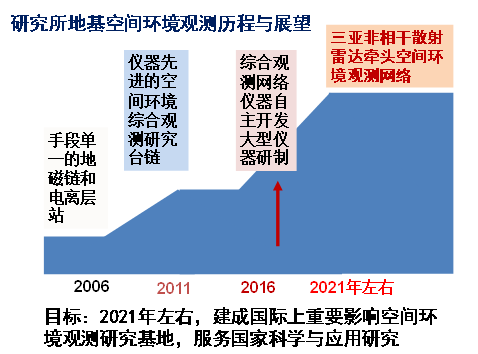 空間環(huán)境觀測臺鏈的發(fā)展走過了很長的道路。從上世紀(jì)80年代,就開始建地磁臺鏈,2006年,地磁臺鏈與武漢的電離層觀測站進(jìn)行整合,2011年,建起空間環(huán)境的綜合觀測,并正式運(yùn)行。目前,正發(fā)展我們自主研制的觀測儀器。我們希望在2021年建成國際上的空間環(huán)境觀測臺鏈的觀測基地,服務(wù)于國家的科學(xué)和應(yīng)用研究。