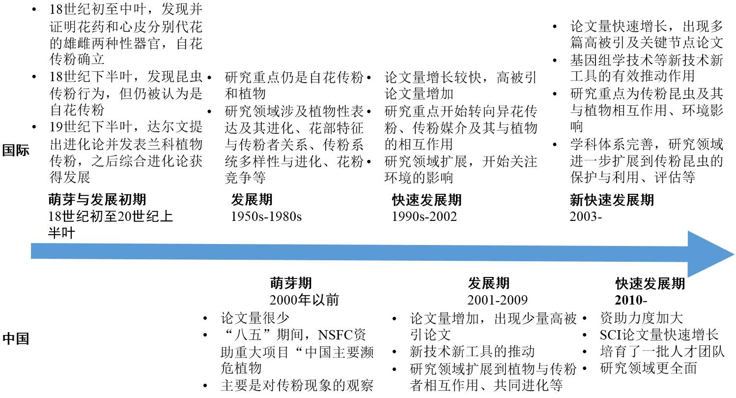 圖6傳粉生物學(xué)領(lǐng)域國際國內(nèi)發(fā)展歷程比較