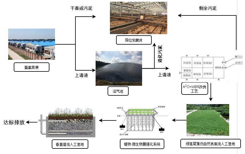 而針對我國規(guī)?;B(yǎng)殖場來說,近些年來大多采用固液分離—厭氧發(fā)酵—好氧曝氣傳統(tǒng)三段式工業(yè)處理模式處理養(yǎng)殖廢水,即理、化并用技術(shù)。該處理模式具有占地小、季節(jié)適應(yīng)性強以及可產(chǎn)出部分能源氣體(沼氣)等優(yōu)點。但同時也存在投入、運行成本高,有機物和氮的去除不徹底,除磷工藝缺乏等缺點。隨著《畜禽養(yǎng)殖業(yè)污染物排放標準》(征求意見稿)的逐步落實,現(xiàn)行的畜禽養(yǎng)殖廢水處理工藝大多已無法滿足新標準的排放要求。